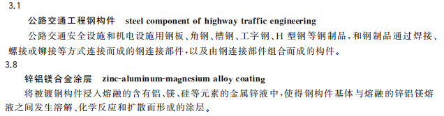 1. 增加了公路交通工程鋼構(gòu)件和鋅鋁鎂合金涂層的術(shù)語(yǔ)和定義(見3.1和3.8);