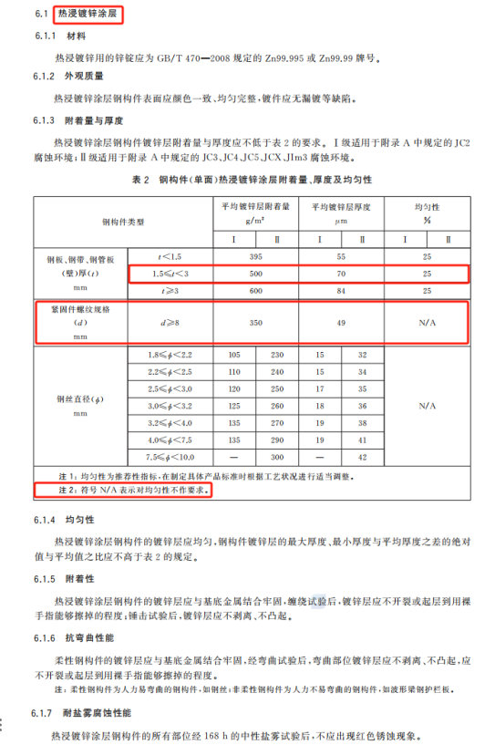 3. 更改了熱浸鍍鋅涂層、熱浸鍍鋅聚酯復(fù)合涂層、熱浸鍍鋅浸塑復(fù)合涂層、環(huán)氧鋅基聚酯復(fù)合涂層相關(guān)的部分技術(shù)要求。